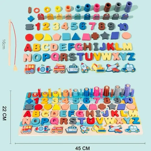 Juguete Montessori 7 en 1 de Madera – Pesca, Números, Ábaco y más